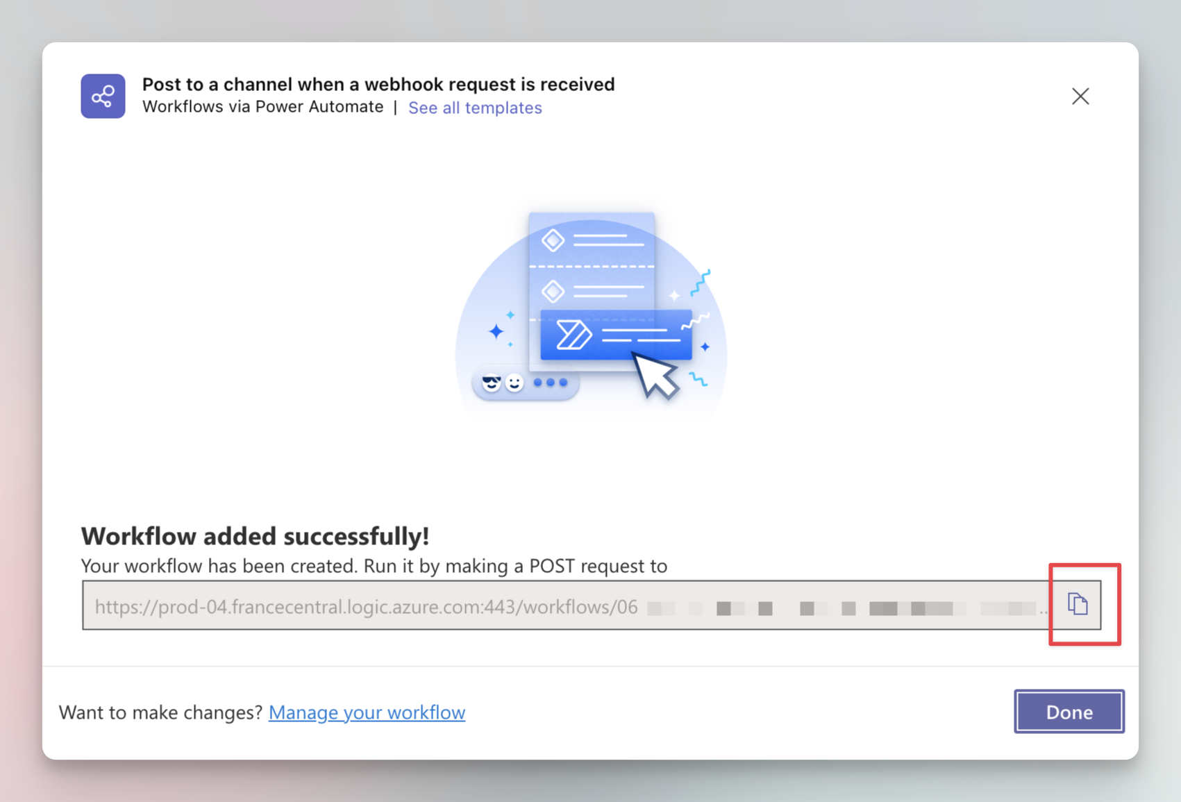 5. Copy the generated webhook URL to use in Brainboard:<br>