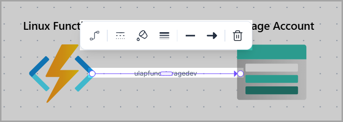 These are used to show a relationship between two resources. They are represented by a solid line with the corresponding text in the middle of the connector.&#x20;