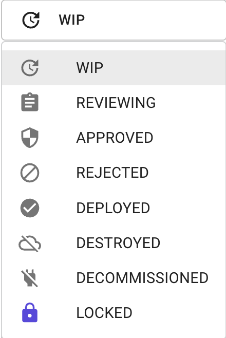 * **Status:** You can choose the status of the template from the values below. If you are working in a team and the template needs approval before being published, then you can choose the status `reviewing` or `approved`.&#x20;