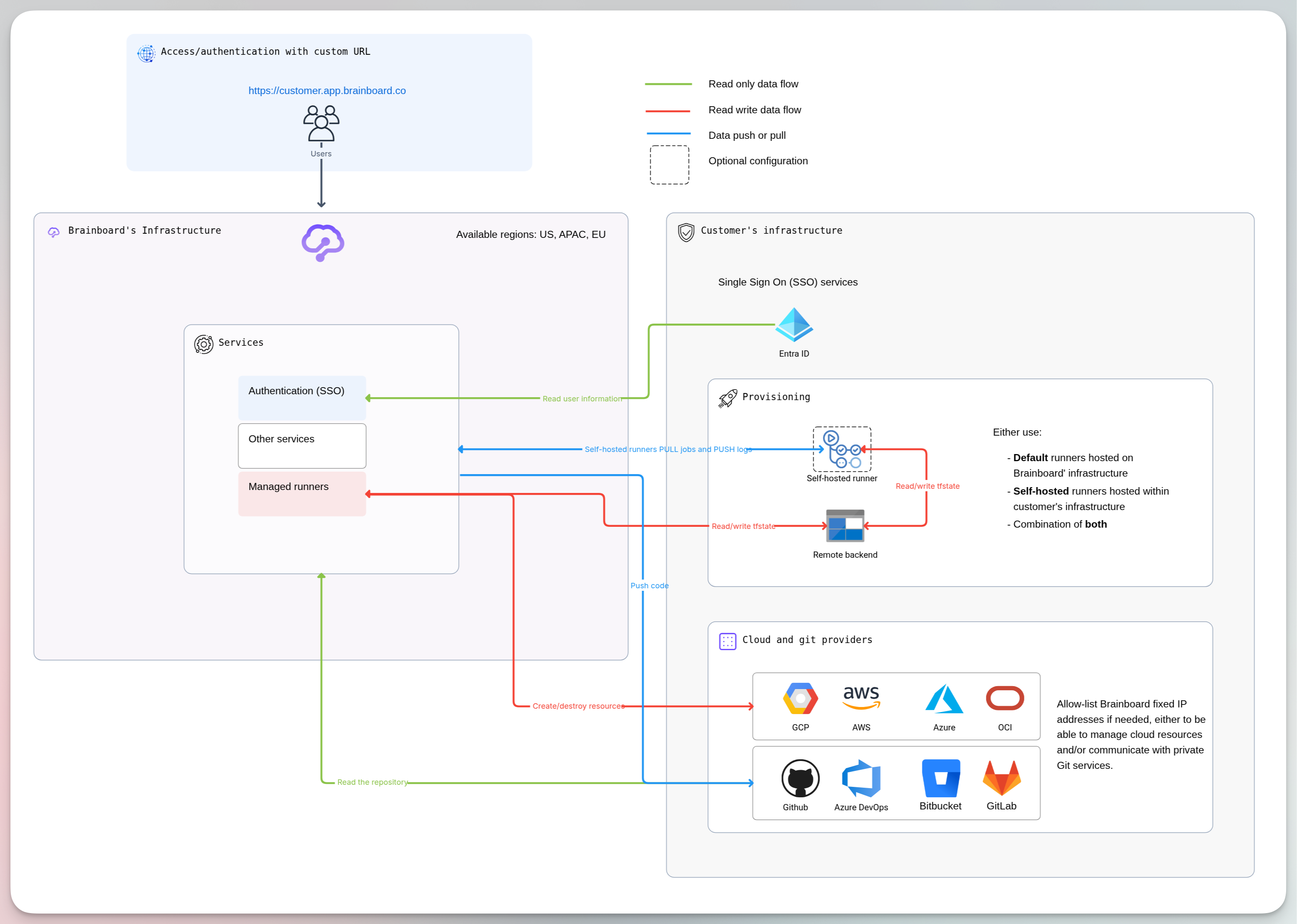 With the self-hosted version, all your information are stored within your infrastructure. Brainboard has no access to it