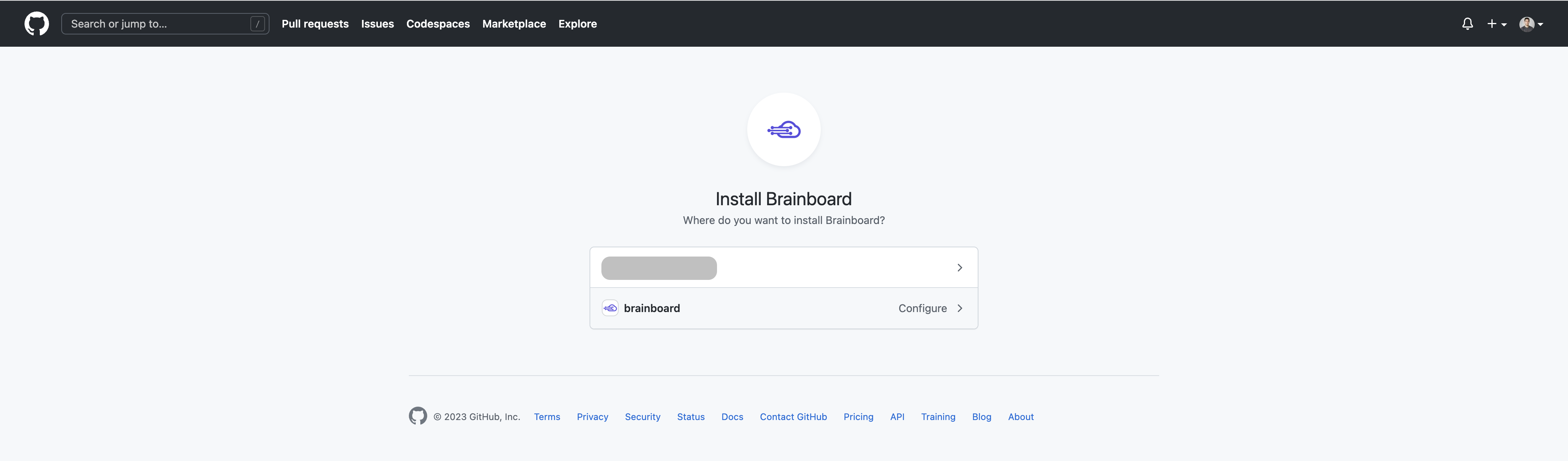 4. You'll be redirected to the GitHub website, where you can edit the integration with Brainboard.